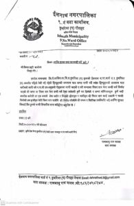 शेख नसिरको श्रीमति शहजदिन खातुनले जग्गा संरक्षणका लागि दिएको निवेदन माथी न्यायीक समितिमा छलफल जारी रहेकोले अन्तिम निर्णय नहुन्जेलसम्मका लागि सो विवादित जग्गामा नाप जाँच नगर्न, नगराउन र यथास्थितीमा राख्न भनी वडा कार्यालयलाई आदेश दिएका छन् ।