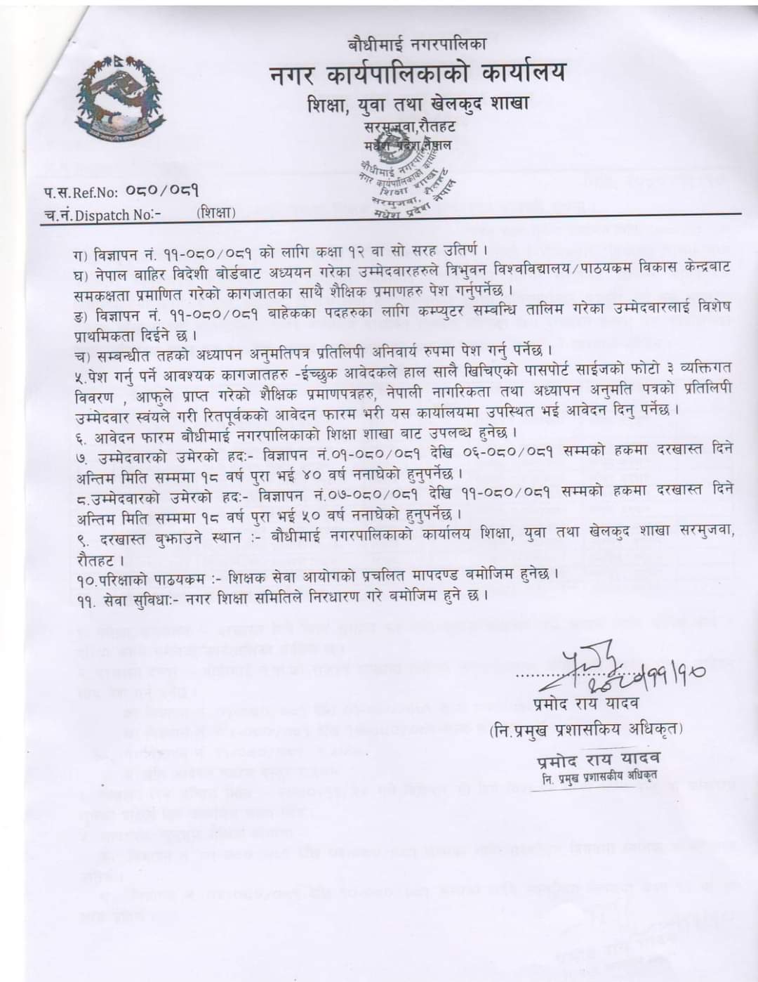 घर Uncategorized बौधिमाई नगर पालिका को सूचना । सूचना ।। सूचना... बौधिमाई नगर पालिका को सूचना । सूचना ।। सूचना ।।। करार सेवामा शिक्षक / कर्मचारी आवश्यकत्ता सम्बन्धी सूचना । द्वारा Gujaramai Media Desk - २ वर्ष अगाडि 15 FacebookTwitterPinterestWhatsApp यो खबर पढेर तपाईलाई कस्तो महसुस भयो ? +1 0 +1 0 +1 0 +1 0 +1 0 Facebook Twitter Email सम्बन्धित लेखलेखक बढी झापामा बालेन साहलाई निशुल्क घर, चुनावी प्रचारमा केपी ओली र बालेन साहबीच प्रतिस्पर्धा चर्किँदै २११औँ पर्सागढी विजय उत्सव भव्य रूपमा सम्पन्न सामाजिक सञ्जाल मनोरञ्जनको माध्यम मात्र होईन अन्यायको विरोध गर्ने ठाउँ पनि हो सिफारिस रौतहटमा श्री विष्णु महायज्ञ २०८२ को भव्य उद्घाटन १ हप्ता अगाडि श्रीराम चिनिमिल्स पुनः सञ्चालनको माग ३ हप्ता अगाडि बौधिमाई नगरपालिकामा HPV खोप सम्बन्धी पालिका स्तरीय अभिमुखीकरण कार्यक्रम सम्पन्न २ महिना अगाडि रौतहटको माधवनारायण नगरपालिकाको प्रशासनिक भवन नमूना बन्दै २ महिना अगाडि बौधिमाई नगरपालिकाद्वारा जनहितमा स्वास्थ्य सन्देश जारी २ महिना अगाडि लोड
