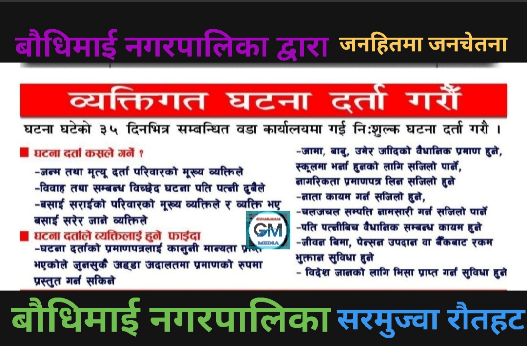 घर सूचना-प्रविधि बौधिमाई नगरपालिका द्वारा जनहितमा जारी संदेश बौधिमाई नगरपालिका द्वारा जनहितमा जारी संदेश द्वारा Gujaramai Media Desk - २ वर्ष अगाडि 40 FacebookTwitterPinterestWhatsApp यो खबर पढेर तपाईलाई कस्तो महसुस भयो ? +1 0 +1 0 +1 0 +1 0 +1 0 Facebook Twitter Email सम्बन्धित लेखलेखक बढी बौधिमाई नगरपालिकाद्वारा जनहितमा स्वास्थ्य सन्देश जारी बौधिमाई नगरपालिकाद्वारा अतिक्रमित सार्वजनिक जग्गा खाली गर्न अन्तिम सूचना बौधिमाई नगरपालिका द्वारा चिसोबाट जोगिन जनचेतनामूलक सन्देश जारी सिफारिस रौतहटमा श्री विष्णु महायज्ञ २०८२ को भव्य उद्घाटन १ हप्ता अगाडि श्रीराम चिनिमिल्स पुनः सञ्चालनको माग ३ हप्ता अगाडि बौधिमाई नगरपालिकामा HPV खोप सम्बन्धी पालिका स्तरीय अभिमुखीकरण कार्यक्रम सम्पन्न २ महिना अगाडि रौतहटको माधवनारायण नगरपालिकाको प्रशासनिक भवन नमूना बन्दै २ महिना अगाडि बौधिमाई नगरपालिकाद्वारा जनहितमा स्वास्थ्य सन्देश जारी २ महिना अगाडि लोड
