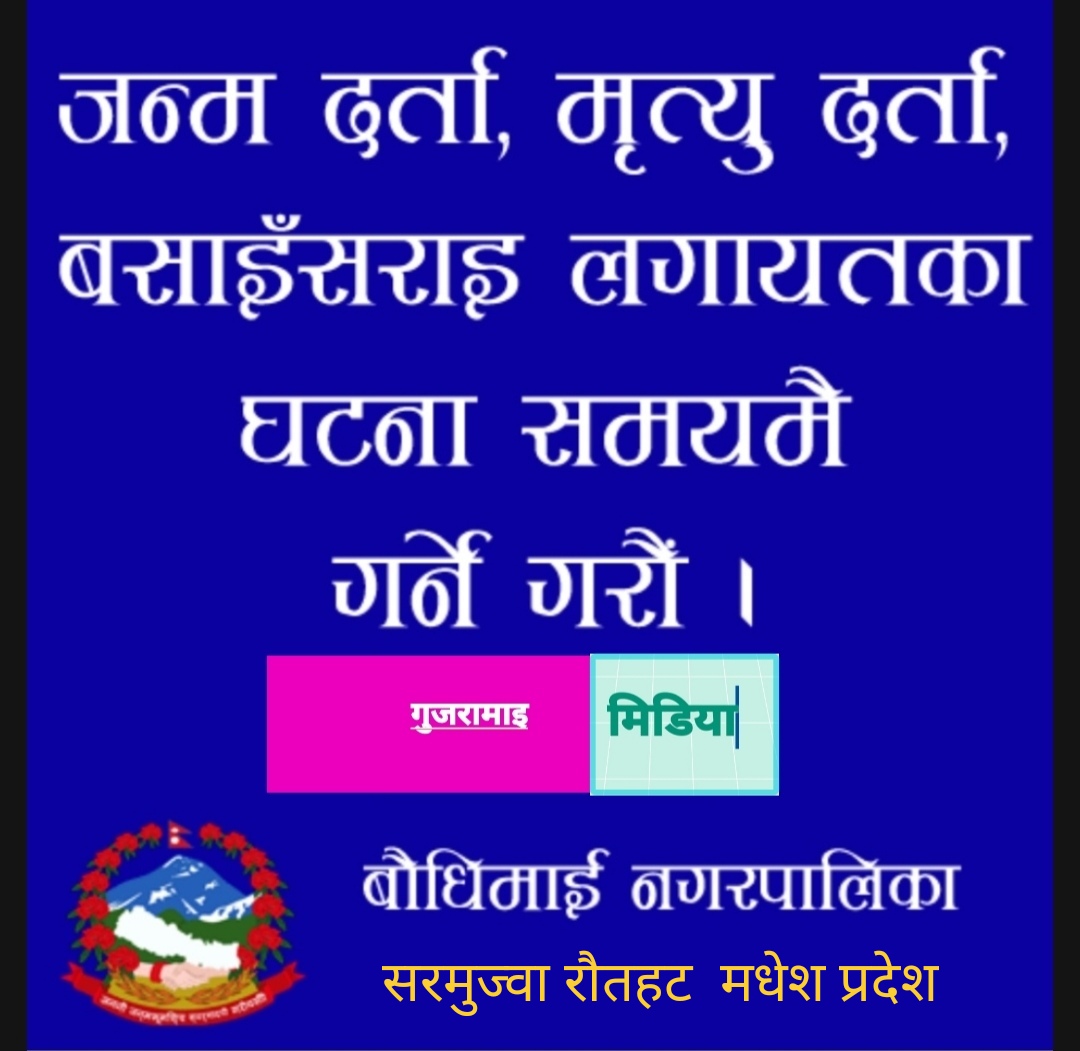 घर Uncategorized बौधिमाई नगरपालिका द्वारा जनहितमा जारी संदेश बौधिमाई नगरपालिका द्वारा जनहितमा जारी संदेश द्वारा Gujaramai Media Desk - २ वर्ष अगाडि 28 FacebookTwitterPinterestWhatsApp यो खबर पढेर तपाईलाई कस्तो महसुस भयो ? +1 0 +1 0 +1 0 +1 0 +1 0 Facebook Twitter Email सम्बन्धित लेखलेखक बढी झापामा बालेन साहलाई निशुल्क घर, चुनावी प्रचारमा केपी ओली र बालेन साहबीच प्रतिस्पर्धा चर्किँदै २११औँ पर्सागढी विजय उत्सव भव्य रूपमा सम्पन्न सामाजिक सञ्जाल मनोरञ्जनको माध्यम मात्र होईन अन्यायको विरोध गर्ने ठाउँ पनि हो सिफारिस रौतहटमा श्री विष्णु महायज्ञ २०८२ को भव्य उद्घाटन १ हप्ता अगाडि श्रीराम चिनिमिल्स पुनः सञ्चालनको माग ३ हप्ता अगाडि बौधिमाई नगरपालिकामा HPV खोप सम्बन्धी पालिका स्तरीय अभिमुखीकरण कार्यक्रम सम्पन्न २ महिना अगाडि रौतहटको माधवनारायण नगरपालिकाको प्रशासनिक भवन नमूना बन्दै २ महिना अगाडि बौधिमाई नगरपालिकाद्वारा जनहितमा स्वास्थ्य सन्देश जारी २ महिना अगाडि लोड