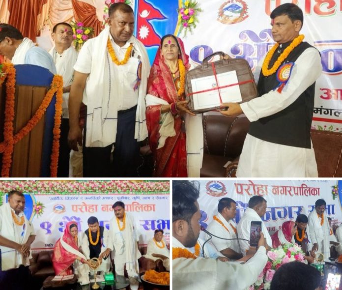 नेपाली काङ्ग्रेसका जिल्ला सचिव रामचन्द्र गिरी जी को प्रमुख अतिथि मा ९ औ नगर सभा सम्पन्न भएको छन ।नगर प्रमुख वकिलले मंगलबार नवौं नगरसभा उद्घाटन समारोहका क्रममा आगामी आर्थिक वर्ष २०८२/०८३ का नीति कुल बजेट ५३ करौड ६७ लाख ८२ हजार ६४ रुपैया सार्वजनिक गरेका छन ।तथा कार्यक्रमहरू सार्वजनिक गर्दै, परोहा नगरले अब चुनाव केन्द्रित योजनाभन्दा दीर्घकालीन र दिगो विकास योजनामा ध्यान दिइरहेको स्पष्ट पारे।