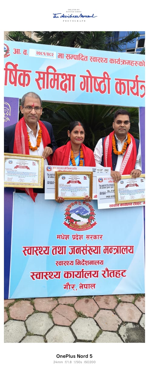 मधेस प्रदेश सरकार, स्वास्थ्य तथा जनसङ्ख्या मन्त्रालयअन्तर्गत स्वास्थ्य निर्देशनालय र स्वास्थ्य कार्यालय रौतहट, गौरद्वारा आयोजित वार्षिक समीक्षा गोष्ठी कार्यक्रममा रौतहटको बौधिमाई नगरपालिका जिल्लास्तरीय समीक्षा गोष्ठीमा दोस्रो  स्थान हासिल गर्न सफल भएको छ।           रौतहट जिल्ला को १८ पालिका मध्ये बौधिमाई नगरपालिका ले दोस्रो स्थान प्राप्त गर्दा पालिका को जान्ताहरु को हौसला बुलन्द गरेका हुन ।आगामी को दिनमा परिश्रम ,मेहनत,लगन ले काम  गरेकोमा  अर्को बर्ष को  समिक्षा गोष्ठी मा प्रथम हुने यस पालिका को जान्ताहरु ले बताए।